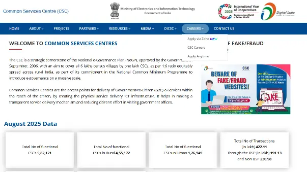 • CSC की आधिकारिक वेबसाइट https://csc.gov.in/ पर जाएं।