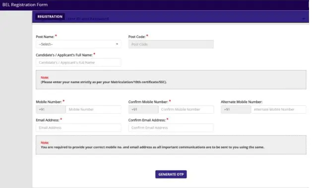 BEL की आधिकारिक वेबसाइट से ऑनलाइन आवेदन करें।
