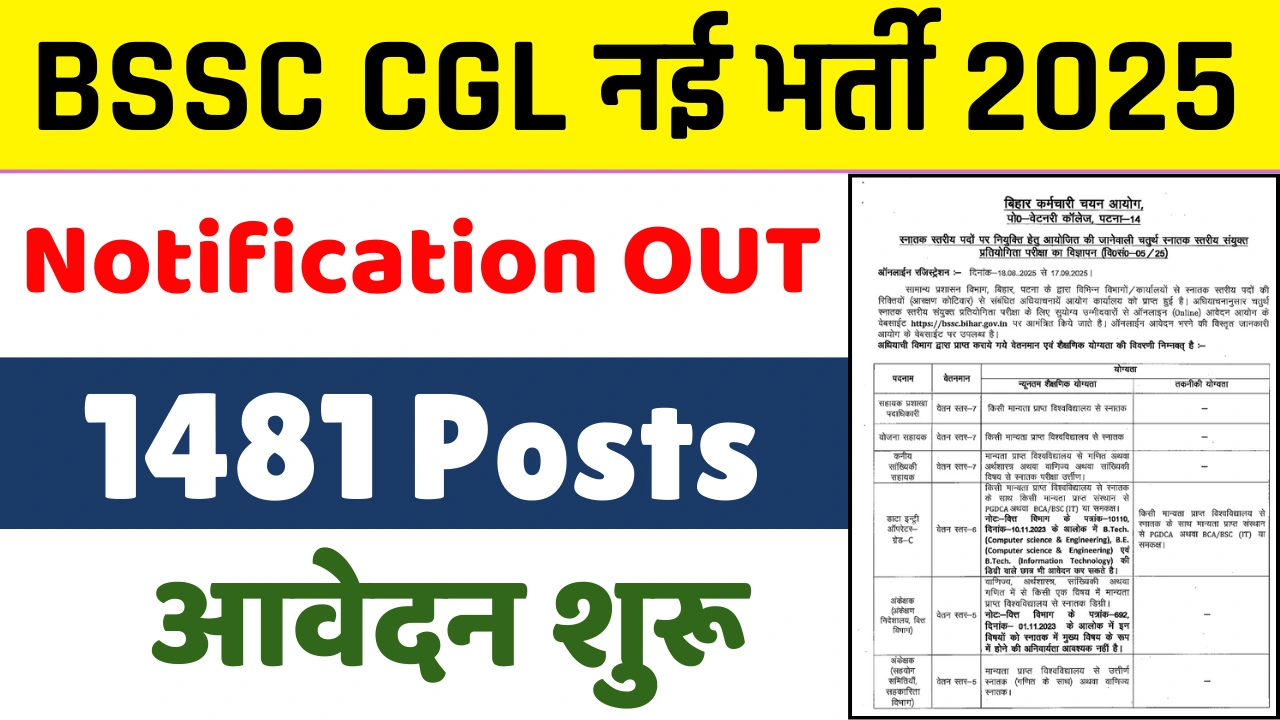 BSSC CGL 4 Vacancy 2025: Apply Online for 1481 Posts, Eligibility, Fee & Exam Pattern