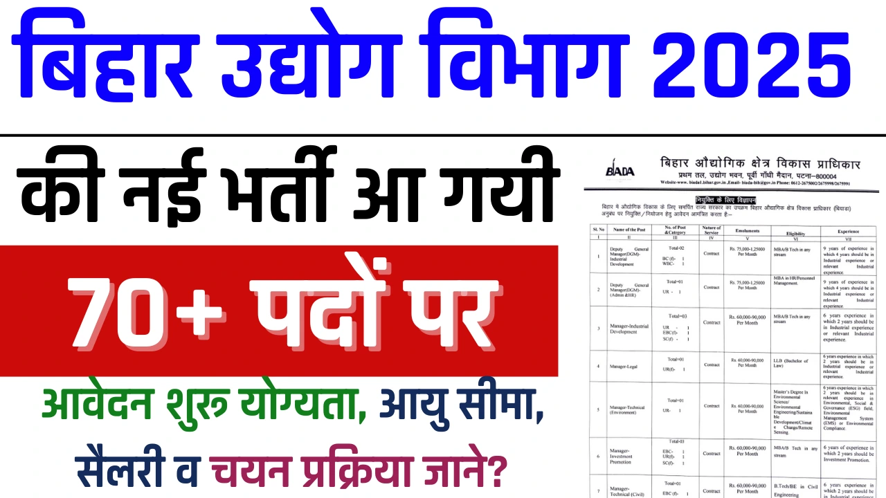 Bihar Udyog Vibhag Vacancy 2025: बिहार उद्योग विभाग में 71 पदों पर भर्ती, ऑनलाइन आवेदन शुरू
