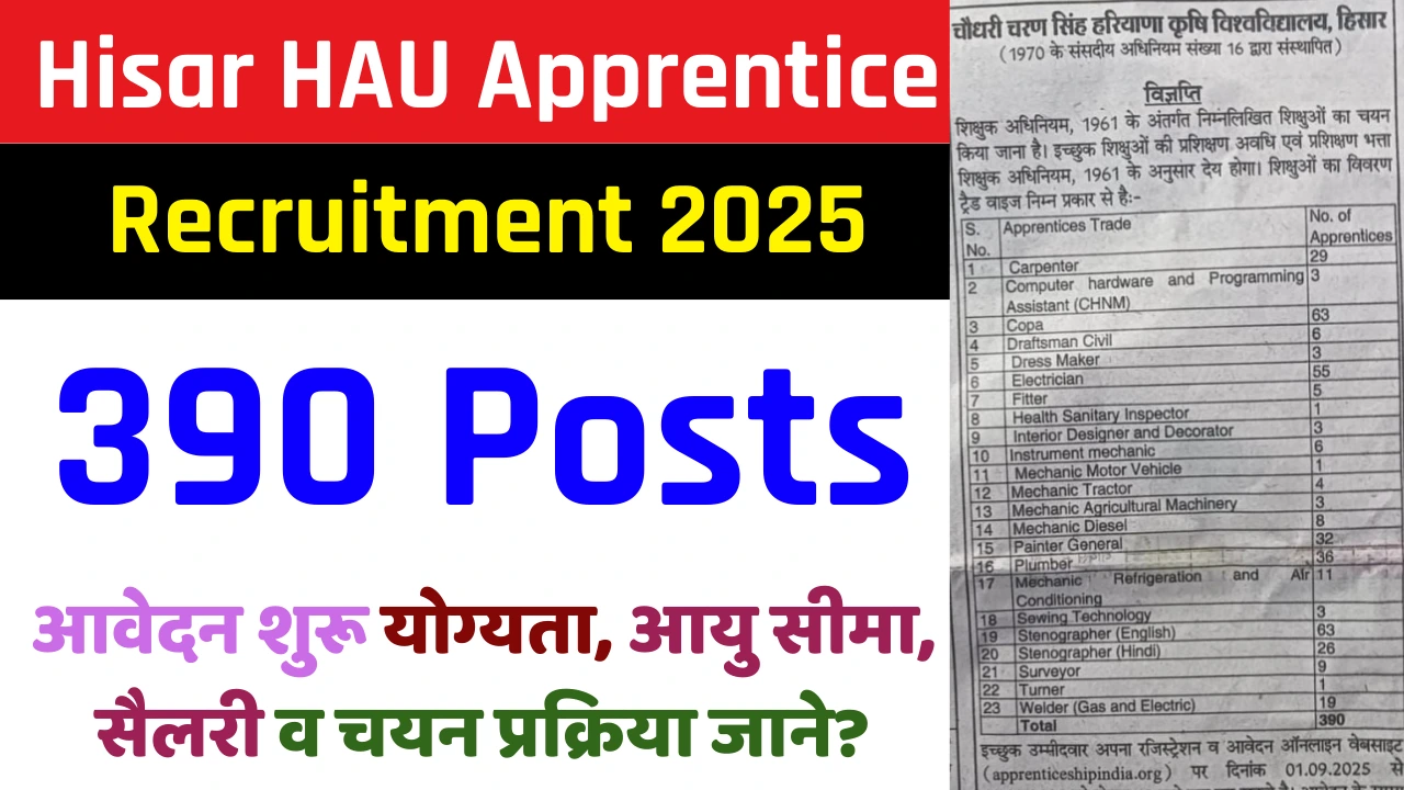 Hisar HAU Apprentice Recruitment 2025: Apply Online for 390 Posts @hau.ac.in