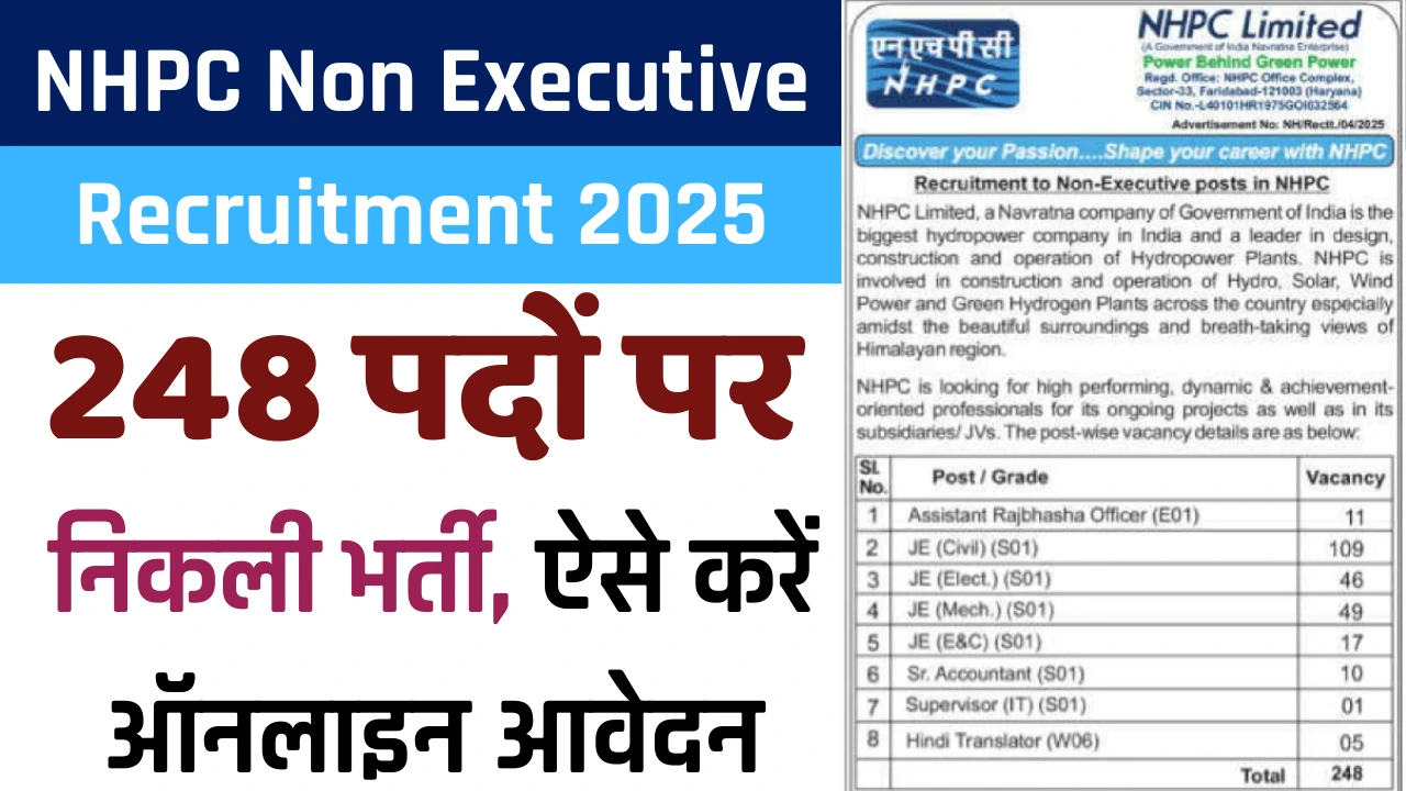 NHPC Non Executive Recruitment 2025: 248 पदों पर निकली भर्ती, ऐसे करें ऑनलाइन आवेदन