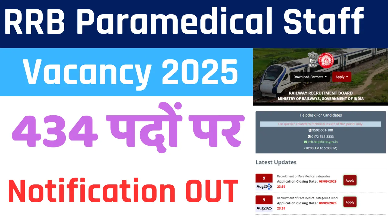 RRB Paramedical Staff Vacancy 2025 | रेलवे भर्ती बोर्ड 434 पदों पर आवेदन शुरू