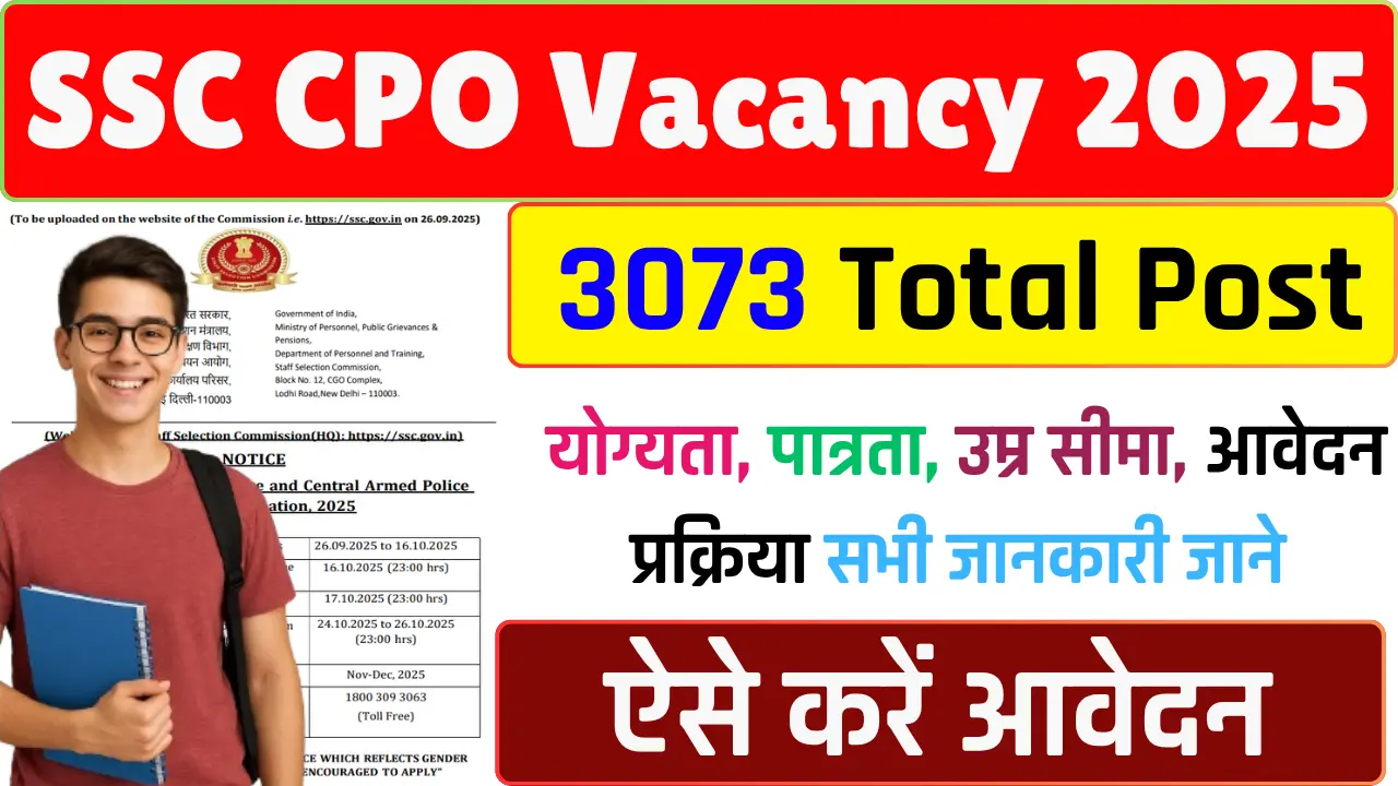 SSC CPO Vacancy 2025: Apply Online for 3073 Posts, Notification, Eligibility, Fees & Last Date