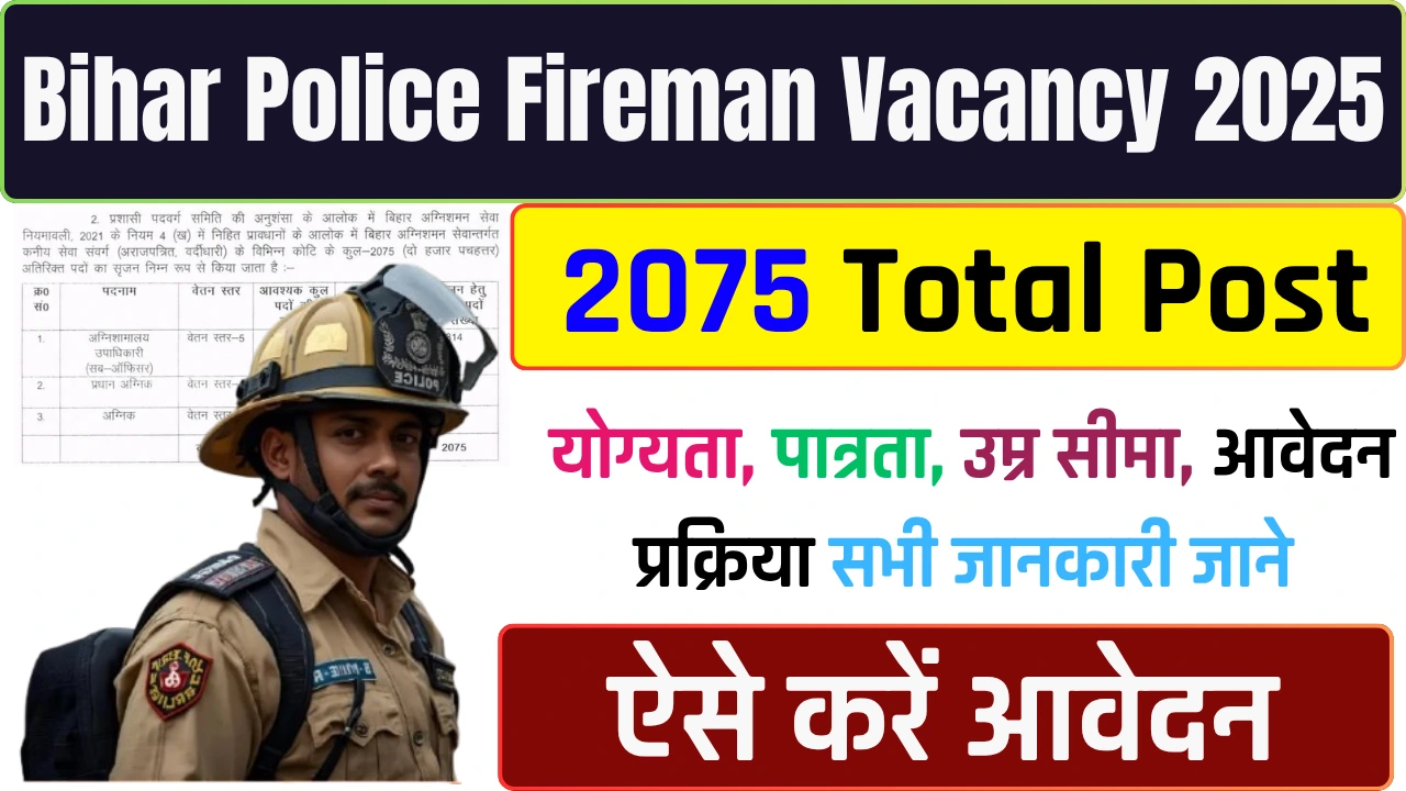 Bihar Police Fireman Vacancy 2025: बिहार अग्निशमन सेवा में 2075 पदों पर बंपर भर्ती, जल्द करें आवेदन!