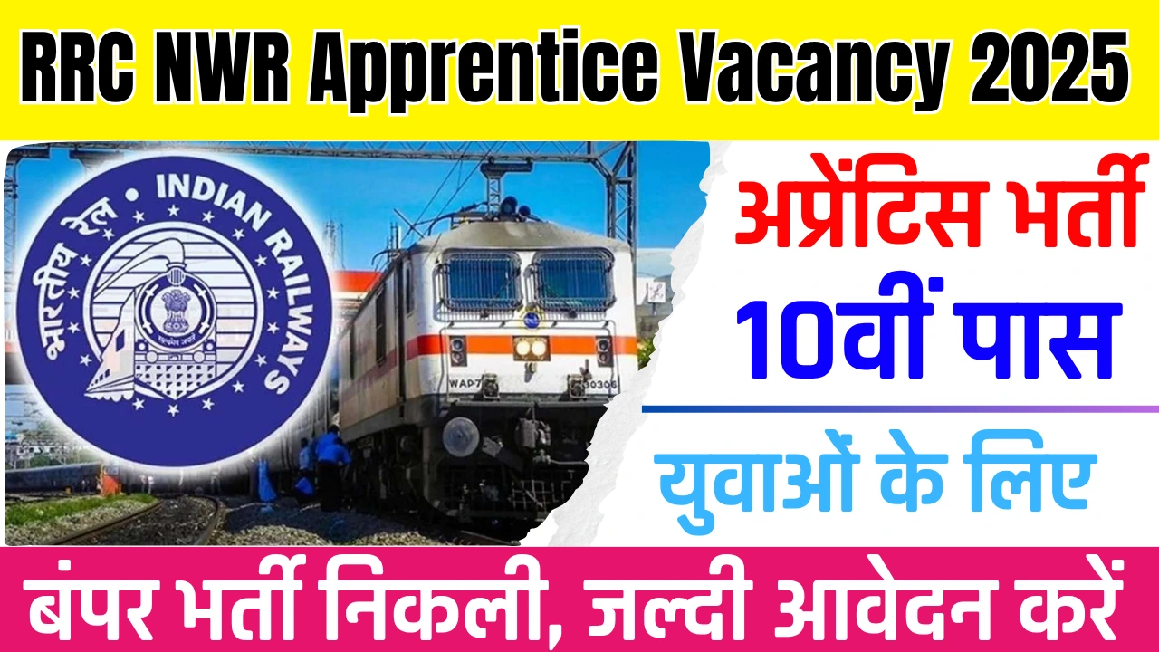 RRC NWR Apprentice Vacancy 2025 :- अगर आपने 10वीं पास कर ली है और आपके पास ITI सर्टिफिकेट है, तो....