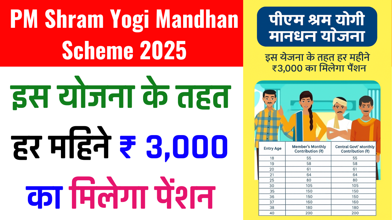 PM Shram Yogi Maandhan Yojana 2025 : प्रधानमंत्री श्रम योगी मानधन योजना आवेदन कैसे करें? | ₹3,000 मासिक पेंशन