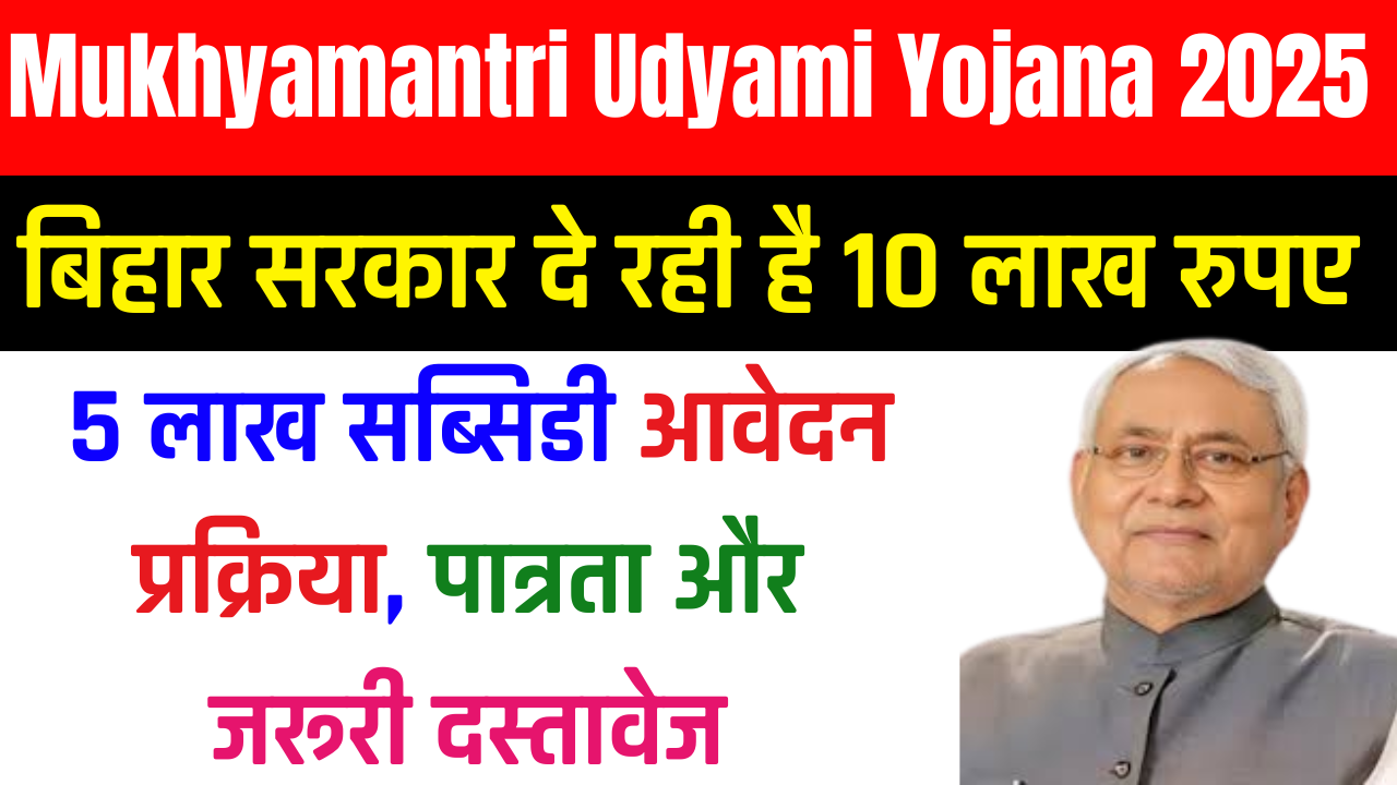 Mukhyamantri Udyami Yojana 2025: बिहार सरकार दे रही है 10 लाख रुपए, 5 लाख सब्सिडी – आवेदन प्रक्रिया, पात्रता और जरूरी दस्तावेज