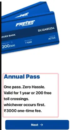 आपके सामने विभिन्न स्कीमें दिखाई देंगी, इनमें से Annual Pass चुनें और Next पर क्लिक करें।