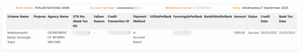 PFMS se Kanya Sumangla Yojana Payment Status Check