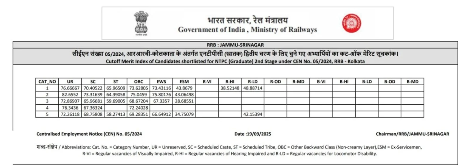| RRB Jammu | Cut Off PDF |