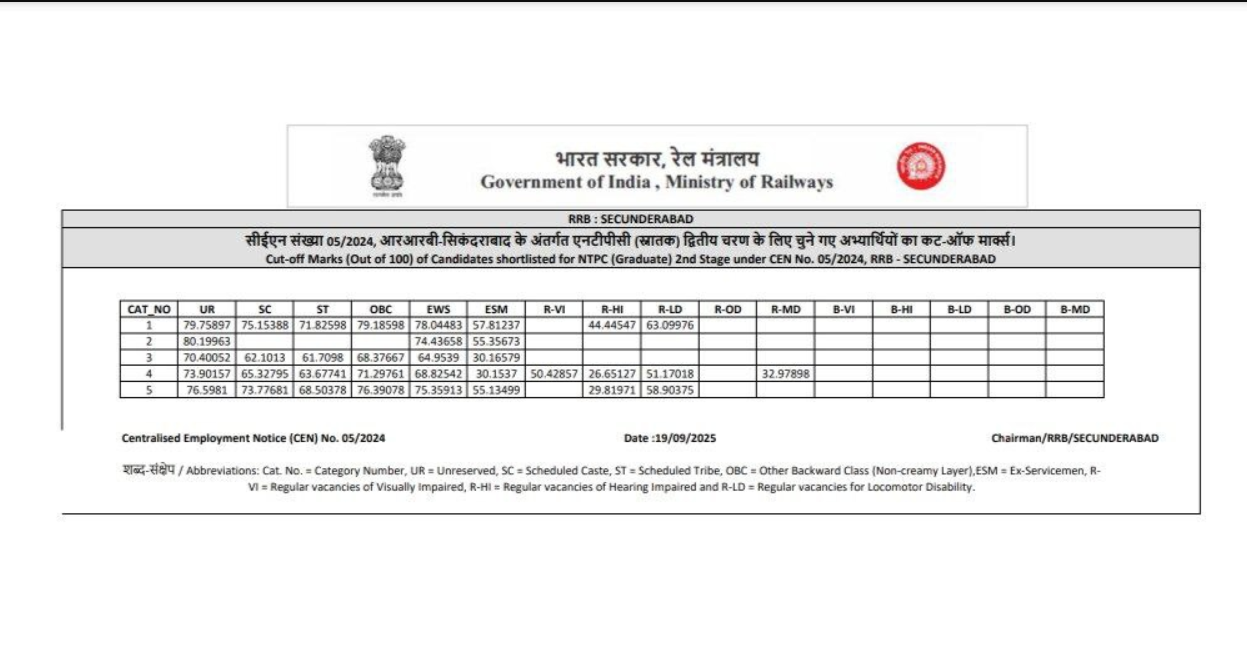 | RRB Secunderabad | Cut Off PDF |