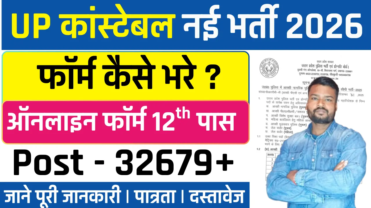 अगर आप UP Police Constable Vacancy 2026 Online Apply करना चाहते हैं, तो यह लेख आपके लिए बेहद उपयोगी साबित होने वाला है। इस आर्टिकल में हमने आपको ऑनलाइन आवेदन प्रक्रिया, आवश्यक दस्तावेज, शैक्षणिक योग्यता, आयु सीमा, आवेदन शुल्क, चयन प्रक्रिया और शारीरिक दक्षता परीक्षा (PET) से जुड़ी सभी जरूरी जानकारी आसान और स्पष्ट भाषा में दी है, ताकि आप बिना किसी परेशानी के इस भर्ती के लिए सफलतापूर्वक आवेदन कर सकें।