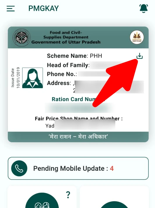 • अब आपके सामने पूरा राशन कार्ड आ जायेगा आपको ऊपर Download के आइकॉन पर क्लिक करना है ।