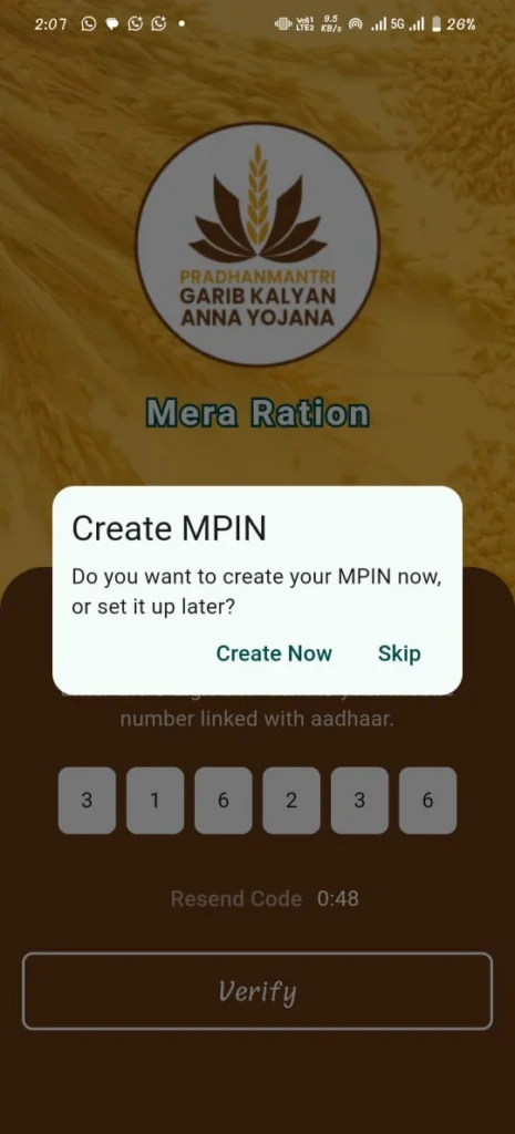 • आधार रजिस्टर्ड मोबाइल नंबर पर ओटीपी आएगा जिसको वेरीफाई कराये।