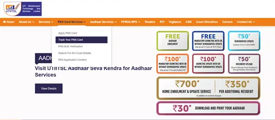 - “Track PAN Card Application Status” पर क्लिक करें।