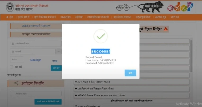 फॉर्म भरने के बाद Submit बटन पर क्लिक करें। आपको एक User Name और Password प्राप्त होगा।