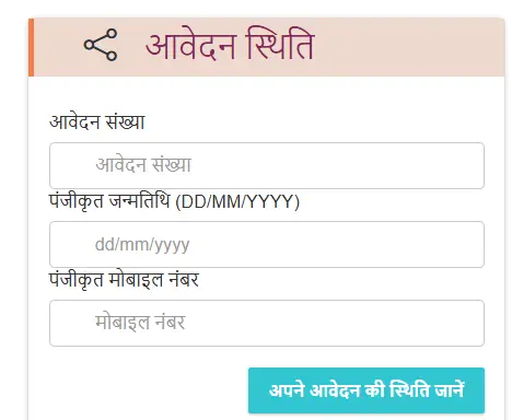 - अब आपको नीचे आना है आवेदन की स्थिति में आपको रजिस्ट्रेशन नंबर, जन्मतिथि, रजिस्टर्ड मोबाइल नंबर को दर्ज करना है।
